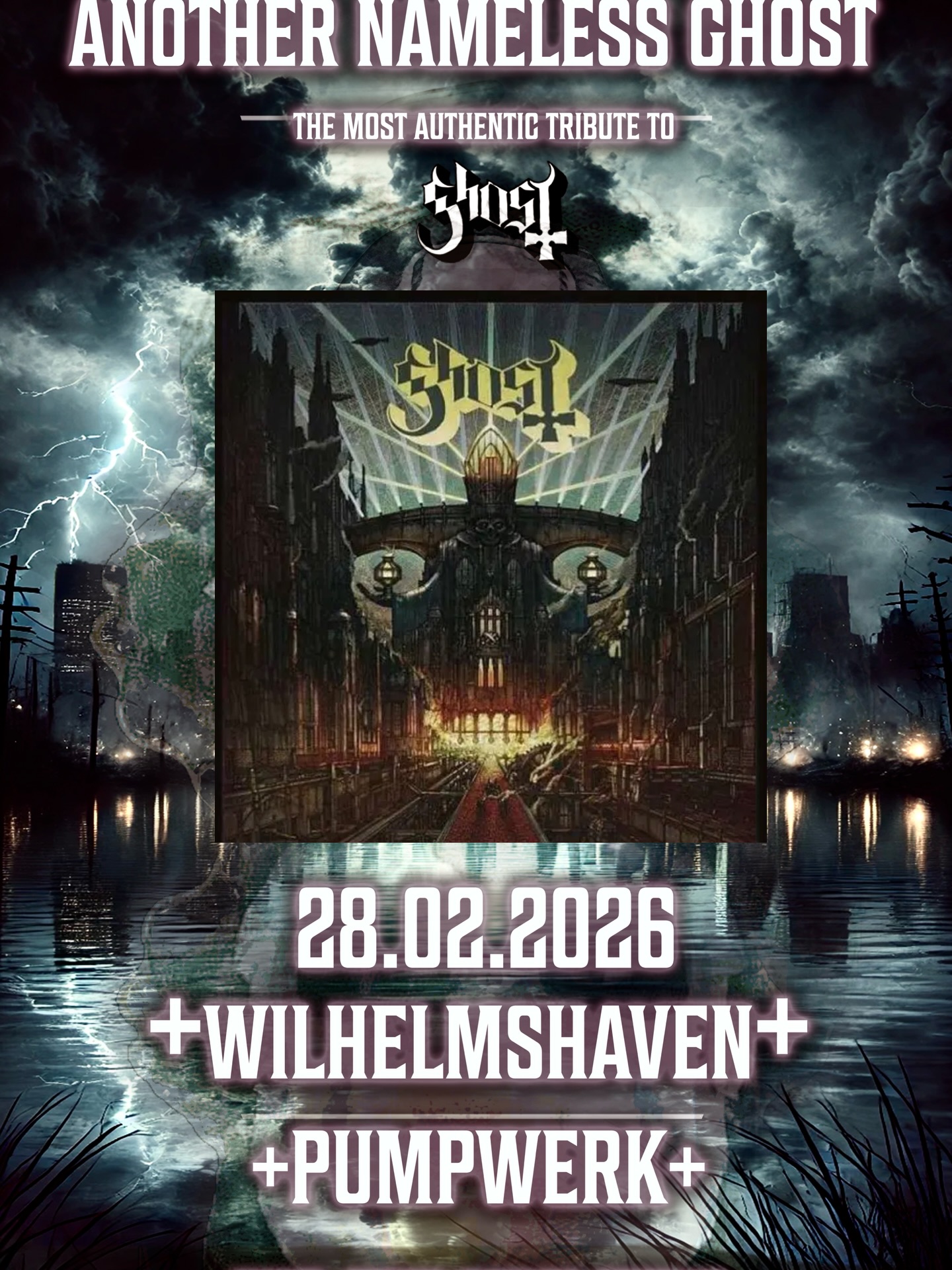 Die GHOST Tribute-Band ANOTHER NAMELESS GHOST ist seit 2016 nicht nur die erste hier zu Lande, sondern auch mittlerweile eine der bekanntesten weltweit. Sie hat es sich zur Aufgabe gemacht, die Musik und Performance von Ghost möglichst authentisch und originalgetreu nachzuempfinden.