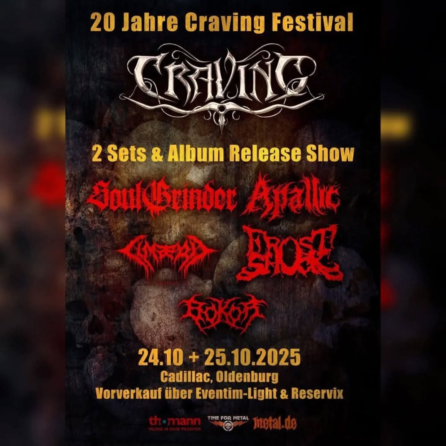 Am 24. und 25. Oktober 2025 lädt die Melodic-Death-Metal-Band Craving zur ultimativen Jubiläums- und Release-Show ins Cadillac Oldenburg ein.