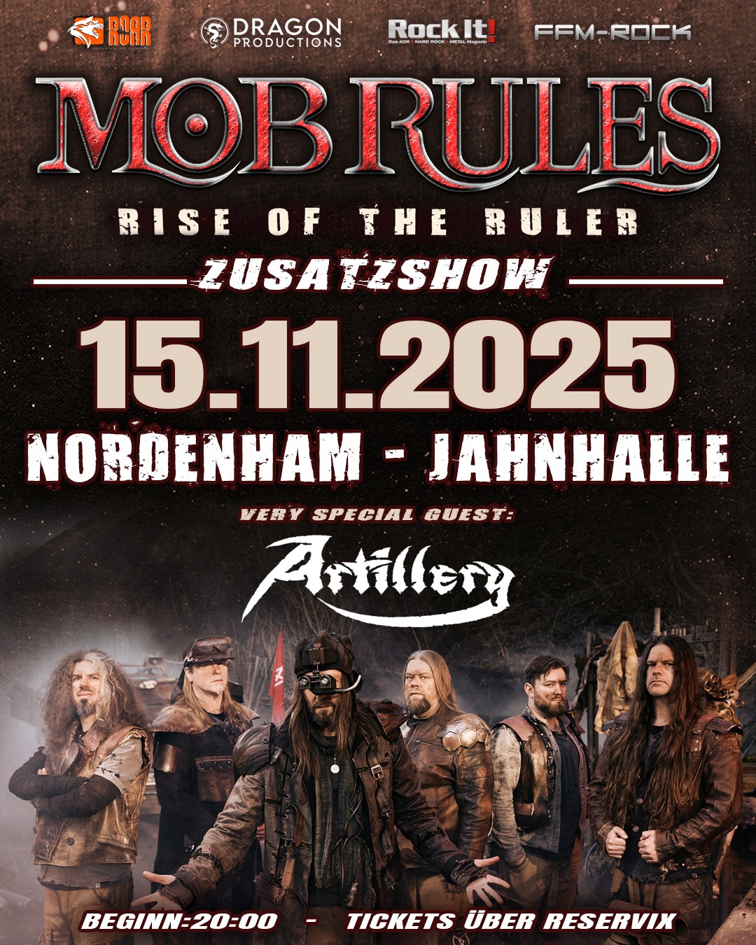 Nachdem die Release-Show zu ihrem neuen Album „Rise Of The Ruler“ in Oldenburg im wundervollen Cadillac schnell ausverkauft war, haben MOB RULES sich daran gemacht schnellstmöglich eine weitere Show zu buchen. Am Samstag 15.11.25 wird die Band deshalb endlich wieder die Bühne der Jahnhalle Nordenham entern – und das mit einer ganz besonderen, exklusiven und schweißtreibenden Show.