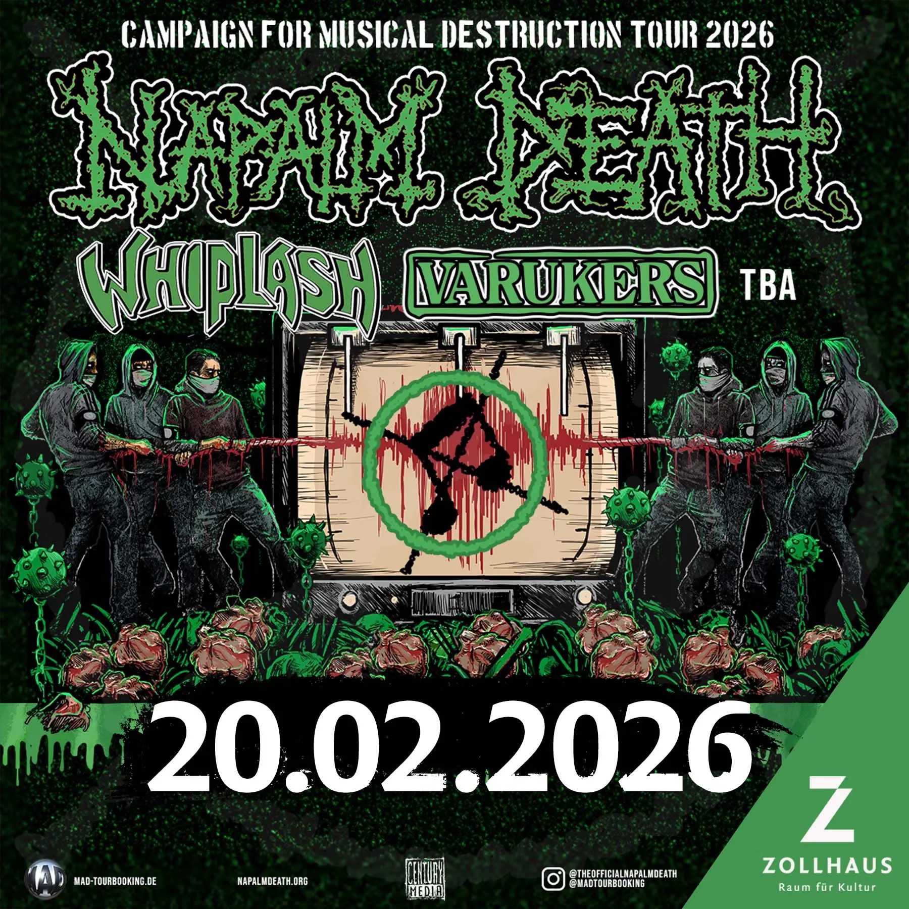 Es gibt nicht viele Touren die Jahrzehnte überleben und immer noch genauso interessant und einflussreich sind wie die …Campaign For Musical Destruction Tour. Diese erfolgreiche und außergewöhnliche Tour führt NAPALM DEATH bereits seit über 30 Jahren durch die Welt – und nun zum dritten Mal in Folge auch ins Zollhaus.