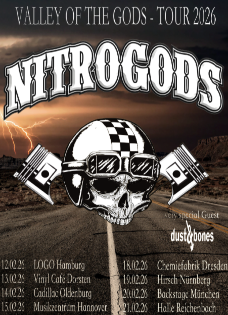 Dieser Ehre wollen die 3 Musiker nun endlich mit der Tour des Kracher Albums VALLEY OF THE GODS vollends gerecht werden. In bekannten Clubs quer durch Deutschland wird der Rock´n`Roll Hammer ausgepackt und mit neuen Songs des Albums sowie Klassikern eine