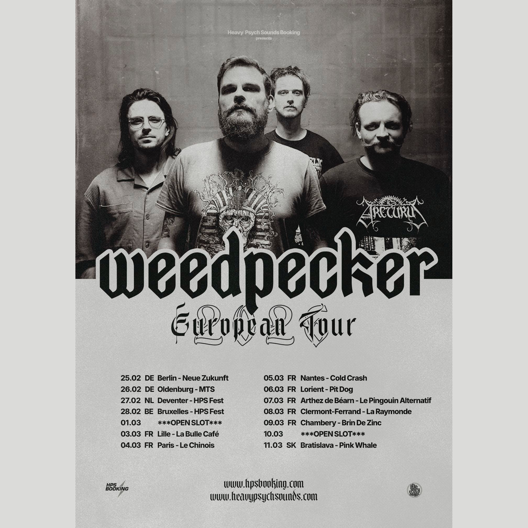 Als eine der polnischen Pionierbands des Psychedelic Stoner Rock haben WEEDPECKER bereits vier Alben veröffentlicht und präsentieren nun in ihrer fünften Phase ein völlig neues Werk. Ständig auf der Suche nach neuen Eindrücken und Klangfarben, jagt die Band unermüdlich dem grünen Drachen hinterher, ohne jemals zurückzublicken. Die Progressive-Heavy-Psychedelic-Rocker bereiten sich natürlich auf die Veröffentlichung ihres neuen Albums V am 27. Februar vor und in diesem Zusammenhang starten sie eine kleine Europatour, bei der sie auch als einen von nur zwei Gigs in ganz Deutschland, in Oldenburg Halt machen.