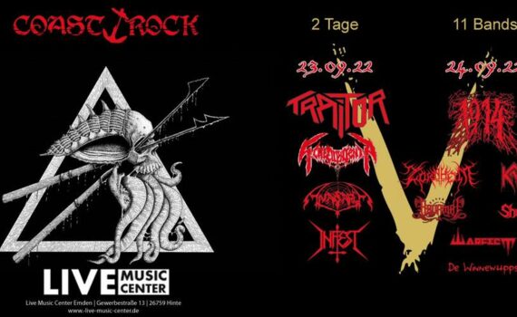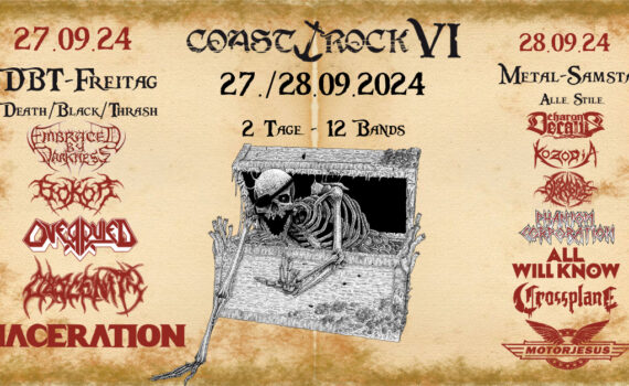 Das Coastrock Festival VI am 27. und 28. September 2024.Der Indoor-Festivalabschluss des Jahres in Ostfriesland (Hinte bei Emden). 27.09.24 (DBT-Freitag) – Death, Black, Thrash only!Einlass 16 Uhr, Beginn 17 Uhr. EMBRACED BY DARKNESS (NL)BOKOR (D)OVERRULED (NL)OBSCENITY (D)MACERATION (DK) 28.09.24 (Metal-Samstag) – Alle Stile!Einlass 13 Uhr, Beginn 14 Uhr. CHARON’S DECAY […]