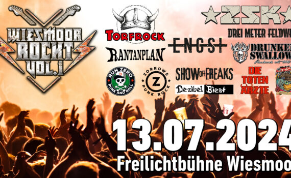 Das Lin-Up: Torfrock, Drei Meter Feldweg, Zorrows, RUN ZERO, Die toten Ärzte, ENGST, Dezibel Biest, Rantanplan, Show Off Freaks, ZSK, Drunken Swallows und White Sparrows. Beginn: 14:00 Uhr Einlass: 13:00 Uhr Ende: 02:00 Uhr Hinweis: Jeder Künstler kann mal krank werden, oder einen TV Auftritt haben und kann eventuell ausfallen, […]