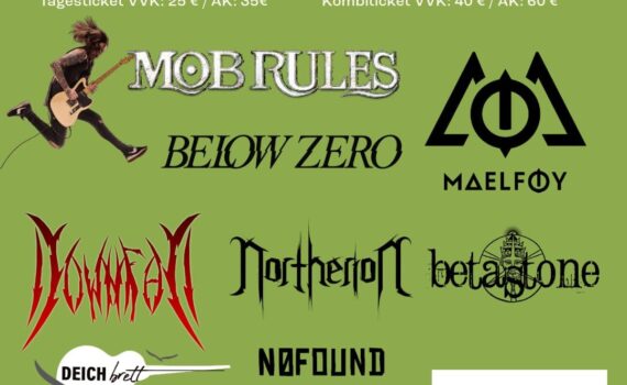 Klosterbeben 2025 – Das Metal- und Rockfestival im Herzen Hudes Folgende Bands sind mit dabei: Freitag: NØFOUND betastone Below Zero Frollein Motte Maelføy Samstag: Generica Deichbrett Downfall Northerion Mob Rules Camping und weitere Übernachtungsmöglichkeiten. Neben dem Kombitickt, gibt es auch jeweils Tagestickets.