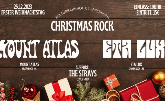 CHRISTMAS ROCK An Weihnachten kommt zusammen was zusammen gehört! MOUNT ATLAS -„Organ-driven Heavy Rock“- Mount Atlas kombiniert flotten Hard Rock der 70er/80er gekonnt mit unterschiedlichsten Sounds wie Krautrock-Synthesizern oder schweren Doom Riffs, die so klingen, als seien sie in ebenso schweren Lederjacken gespielt worden. Erfrischend eigenständige und abwechslungsreiche Songs […]