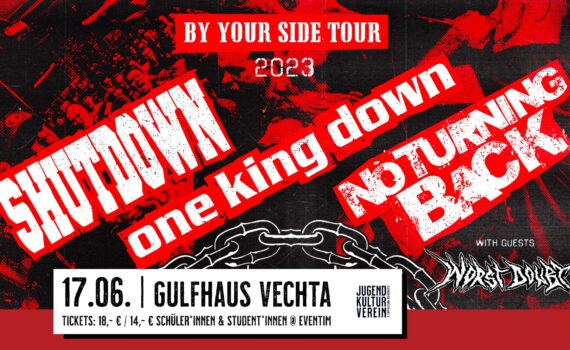 Wer die volle Hardcore-Dröhnung sucht, der findet sie vermutlich an diesem Abend im Gulfhaus in Vechta. Im Rahmen der By Your Side-Tour entern gleich vier internationale Bands die Bühne: One King Down Shutdown No Turning Back Worst Doubt