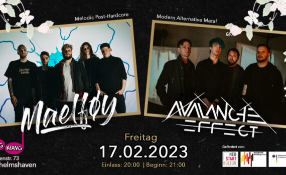 Double Metal Action mit MAELFØY (Melodic Post-Hardcore) und AVALANCHE EFFECT (Modern Alternative Metal) am 17.Februar 2023 live im Kling Klang. MAELFØY Maelføy aus Ganderkesee spielen stimmgewaltigen Melodic Post-Hardcore mit Einflüssen aus Alternative Rock und Metalcore. Die fünfköpfige Truppe aus Norddeutschland bleibt dabei auch 2023 ihren musikalischen Wurzeln treu. Die Band […]