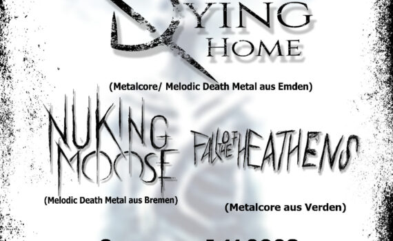 Die Band A DYING HOME (Metalcore / Melodic Death (aus Emden feiert an diesem Abend ihre EP-Release-Show Miot dabei sind NUKING MOOSE (Melodic Death Metal) aus Bremen und FALL OF THE HEATHENS (Industrial/Black Metal) aus Verden. Wo? In der Szenerie, der kultigen Rockkneipe in Leer. Der Eintritt ist kostenlos!