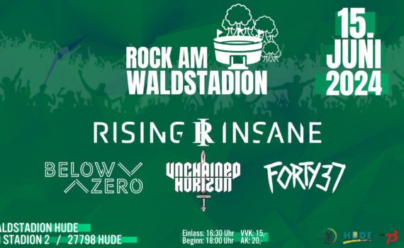 Das LineUp: RISING INSANE UNCHAINED HORIZON BELOW ZERO FORTY37 BEAST IN THE BASEMENT Beginn 16:30Uhr (Einlass ab 16:30 Uhr) In Kooperation mit: Gemeinde Hude FC Hude e.V. Media 73 Tickets sind vor Ort bei der Buchhandlung Lesen und Mehr in der Parkstraße 30 in Hude und über den Shop des […]