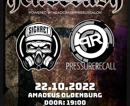 SICKRET bringt den Nu Metal der 90er ins heute. Der Sound ist eine Mischung aus KORN, LIMP BIZKIT und DEFTONES,mit moderner Musik gemixt. Mit ihrem vielfältigen Songwriting zeigt SICKRET, dass Nu Metal noch lebt! Das gleiche gilt für PRESSURE RECALL, auch sie halten die Nu Metal Fahne hoch und sind […]